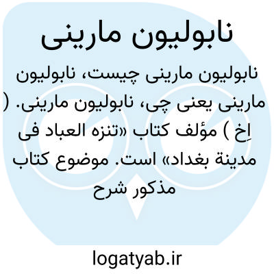 نابولیون مارینی. ( اِخ ) مؤلف کتاب «تنزه العباد فی مدینة بغداد» است. موضوع کتاب مذکور شرح مختصری است پیرامون سوابق تاریخی و اوضاع جغرافیایی بغداد. رجوع به معجم المطبوعات ص 1834 شود.