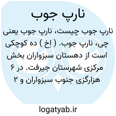 نارپ جوب. ( اِخ ) ده کوچکی است از دهستان سبزواران بخش مرکزی شهرستان جیرفت. در 6 هزارگزی جنوب سبزواران و 2 هزارگزی راه فرعی سبزواران به کهنوج واقع است و ده تن سکنه دارد. ( از فرهنگ جغرافیایی ایران ج 8 ص 406 ).