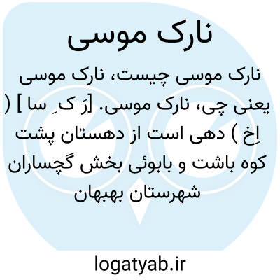 نارک موسی. [رَ ک ِ سا ] ( اِخ ) دهی است از دهستان پشت کوه باشت و بابوئی بخش گچساران شهرستان بهبهان در 64هزارگزی شمال شرقی گچساران و 18هزارگزی شمال جاده شوسه گچساران به بهبهان در ناحیه ای کوهستانی واقع است. هوایش معتدل و مالاریائی است و 400 تن سکنه دارد که از طایفه ٔباشت و بابوئی هستند. آبش از چشمه و محصولش غلات و کنجد و برنج و حبوبات و لبنیات و شغل مردمش زراعت و حشم داری و صنعت دستی اهالی بافتن عبا و گلیم است. راه مالرو دارد. ( از فرهنگ جغرافیائی ایران ج 6 ص 352 ).