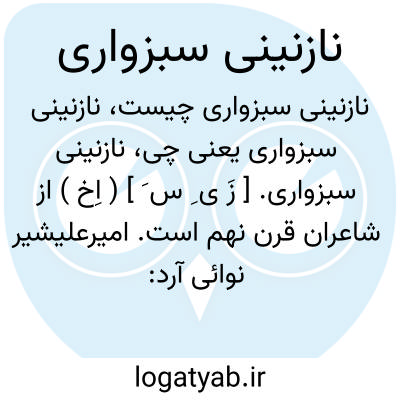 نازنینی سبزواری. [ زَ ی ِ س َ ] ( اِخ ) از شاعران قرن نهم است. امیرعلیشیر نوائی آرد: «طبعی خوب و دلپذیر داشته و مقبول اکابر و اصاغر بوده ولیکن عامی بوده و شعرش خالی از چاشنی خوب نبوده و غزل بیشتر می گفته و اصل او از سبزوار است به امیر شاهی مصاحبت می نموده، این مطلع از اوست: