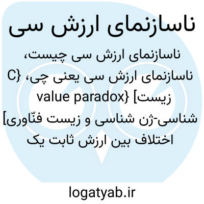 {C value paradox} [زیست شناسی-ژن شناسی و زیست فنّاوری] اختلاف بین ارزش ثابت یک اندامگان و پیچیدگی تکاملی آن متـ. ناسازنمای ارزش ثابت