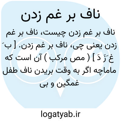 ناف بر غم زدن. [ ب َ غ َزَ دَ ] ( مص مرکب ) آن است که ماماچه اگر به وقت بریدن ناف طفل غمگین و بی دماغ باشد آن کودک همیشه غمگین خواهد بود و گویند «ناف او را به غم زده اند» و یا در ساعت بد بریده باشند. ( برهان قاطع ) ( آنندراج ). مقابل ناف بر خوشی زدن. رجوع به ناف بر خوشی زدن شود.