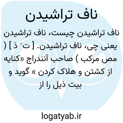 ناف تراشیدن. [ ت َ دَ ] ( مص مرکب ) صاحب آنندراج «کنایه از کشتن و هلاک کردن » گوید و بیت ذیل را از عرفی به شاهد آن آرد، اما در استنباط خود بر صواب نیست و بیت شاهد «از ناف تراشیدن » نیست: