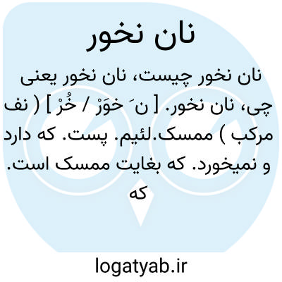 نان نخور. [ ن َ خوَرْ / خُرْ ] ( نف مرکب ) ممسک.لئیم. پست. که دارد و نمیخورد. که بغایت ممسک است. که نان خودش از گلویش پائین نمیرود از غایت لئامت.