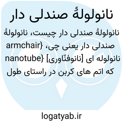 {armchair nanotube} [نانوفنّاوری] نانولوله ای که اتم های کربن در راستای طول آن به صورت یک درمیان بالا و پایین و به شکل صندلی قرار گرفته اند