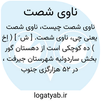 ناوی شصت. [ ش َ ] ( اِخ ) ده کوچکی است از دهستان گور بخش ساردوئیه شهرستان جیرفت، در 52 هزارگزی جنوب شرقی ساردوئیه و 14 هزارگزی جنوب راه مالرو ساردوئیه به دارزین واقع است و 12 تن سکنه دارد. ( از فرهنگ جغرافیایی ایران ج 8 ).