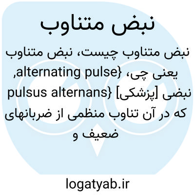 {alternating pulse, pulsus alternans} [پزشکی] نبضی که در آن تناوب منظمی از ضربانهای ضعیف و قوی، بدون تغییر در مدت چرخۀ قلبی، وجود دارد