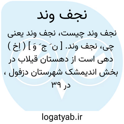نجف وند. [ ن َ ج َ وَ ] ( اِخ ) دهی است از دهستان قیلاب در بخش اندیمشک شهرستان دزفول، در 39 هزارگزی شمال غربی اندیمشک و 8 هزارگزی شمال شرقی جاده اندیمشک به خرم آباد، در منطقه کوهستانی گرمسیری واقع است و 100 تن سکنه دارد. آبش از رودخانه و محصولش غلات دیم و شغل اهالی زراعت و قالیبافی است. ( از فرهنگ جغرافیایی ایران ج 6 ).
