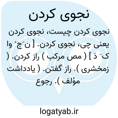نجوی کردن. [ ن َج ْ وا ک َ دَ ] ( مص مرکب ) راز کردن. ( زمخشری ). راز گفتن. ( یادداشت مؤلف ). رجوع به نجوی شود. || به راز گفتن. آهسته گفتن. تنگ گوش گفتن. زیرگوشی گفتن. یواشکی گفتن. بیخ گوش کسی زمزمه کردن. ( یادداشت مؤلف ). رجوع به نجوی شود.