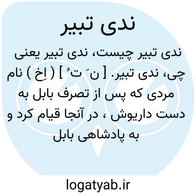 ندی تبیر. [ ن َ ت ُ ] ( اِخ ) نام مردی که پس از تصرف بابل به دست داریوش، در آنجا قیام کرد و به پادشاهی بابل رسید و سرانجام در جنگ با داریوش کشته شد. داریوش در بند 16 ستون اول کتیبه بیستون گوید: «بعد یک مرد بابلی، ندی تبیر ( این اسم را بعضی نی دین توبل خوانده اند ) پسر «آئی نیری » در بابل بر من خروج کرد و گفت: من بخت النصر پسر نبونیدم. تمام اهل بابل به طرف او رفته از من برگشتند. او سلطنت بابل را تصرف کرد». و در بند 18 همان ستون و همان کتیبه چنین است: «پس از آن من به طرف بابل رفتم به قصد ندی تبیر که خود را بخت النصر می نامید. قشون او در دجله بود، آن طرف دجله را نگاه میداشت و کشتی هائی داشت. من لشکر خود را دو قسمت کرده قسمتی را بر شترها و قسمتی را بر اسبها سوار کردم. اهورمزدامرا کمک کرد. به اراده اهورمزد از دجله گذشتم و بالشکر ندی تبیر جنگ کرده آن را شکست دادم، 26 ماه آئریادی بود که این جنگ روی داد». و در بند 19 گوید: «پس از آن من به طرف بابل رفتم. هنوز بدانجا نرسیده بودم که در محلی موسوم به زازانه در ساحل فرات ندی تبیر،که خود را بخت النصر می نامید با قشون خود به جنگ آمد. جنگ کردیم و اهورمزد یاری خود را به من اعطاء کرد.به اراده اهورمزد لشکری را که فرمانده آن ندی تبیر بود شکست فاحشی دادم. دشمن خود را در آب انداخت، آب آن را برد، روز دوم ماه انامک بود که این جنگ روی داد». و در بند اول ستون دوم گوید: «از آنجا ندی تبیر با کمی سوار، که نسبت به او باوفا بود به بابل رفت. فوراً بابل را محاصره کرده به اراده اهورمزد آن را تسخیر کردم و این ندی تبیر را گرفتم. پس از آن او را در بابل کشتم ». ( از تاریخ ایران باستان صص 539-540 ).