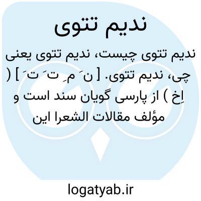 ندیم تتوی. [ ن َ م ِ ت َ ت َ ] ( اِخ ) از پارسی گویان سند است و مؤلف مقالات الشعرا این بیت را از او آورده: