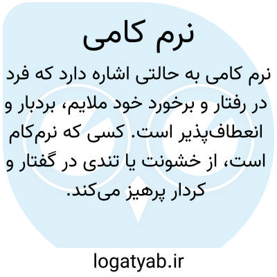 نرم کامی به حالتی اشاره دارد که فرد در رفتار و برخورد خود ملایم، بردبار و انعطاف‌پذیر است. کسی که نرم‌ کام است، معمولاً از خشونت یا تندی در گفتار و کردار پرهیز می‌کند و با دیگران با احترام و صبر رفتار می‌کند. چنین شخصی تمایل دارد با ملایمت و تدبیر مسائل را حل کند و دیگران را به همکاری و تفاهم تشویق نماید. این ویژگی باعث احترام دیگران نسبت به فرد می‌شود و فضای تعاملی سالم و صلح‌آمیز ایجاد می‌کند.