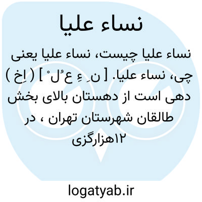 نساء علیا. [ ن ِ ءِ ع ُل ْ ] ( اِخ ) دهی است از دهستان بالای بخش طالقان شهرستان تهران، در 12هزارگزی شرق شهرک در ناحیه کوهستانی سردسیری واقع است و 391 تن سکنه دارد. آبش از شاهرود، محصولش غلات و ارزن و سیب زمینی و گردو و انواع میوه ها، شغل اهالی زراعت و کرباس بافی و جاجیم بافی است. ( از فرهنگ جغرافیایی ایران ج 1 ).