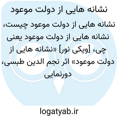 [ویکی نور] «نشانه هایی از دولت موعود» اثر نجم الدین طبسی، دورنمایی را از جامعه اسلامی پس از ظهور امام زمان(عج) ترسیم کرده که به زبان فارسی و در سال 1373ش نوشته شده است.