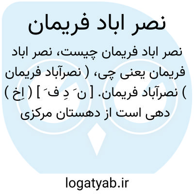 ( نصرآباد فریمان ) نصرآباد فریمان. [ ن َ دِ ف َ ] ( اِخ ) دهی است از دهستان مرکزی بخش فریمان شهرستان مشهد. در 18 هزارگزی جنوب شرقی فریمان، در جلگه معتدل هوائی واقع است و 134 تن سکنه دارد. آبش از قنات، محصولش غلات، شغل اهالی زراعت است. ( از فرهنگ جغرافیائی ایران ج 9 ).