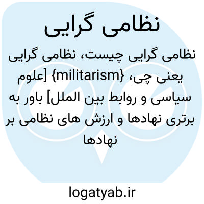 {militarism} [علوم سیاسی و روابط بین الملل] باور به برتری نهادها و ارزش های نظامی بر نهادها و ارزش های جامعۀ مدنی و عمل به این باور