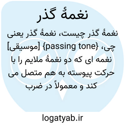{passing tone} [موسیقی] نغمه ای که دو نغمۀ ملایم را با حرکت پیوسته به هم متصل می کند و معمولاً در ضرب ضعیف به گوش می رسد