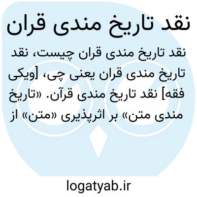 [ویکی فقه] نقد تاریخ مندی قرآن. «تاریخ مندی متن» بر اثرپذیری «متن» از واقعیات فرهنگی و اجتماعی عصر پیدایش آن تاکید دارد. این مقاله تقریر نصر حامد ابوزید از تاریخ مندی قرآن را بررسی می کند.