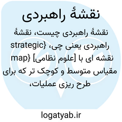{strategic map} [علوم نظامی] نقشه ای با مقیاس متوسط و کوچک تر که برای طرح ریزی عملیات، شامل حرکات و تمرکز و آماد نیروهای نظامی، مورد استفاده قرار می گیرد