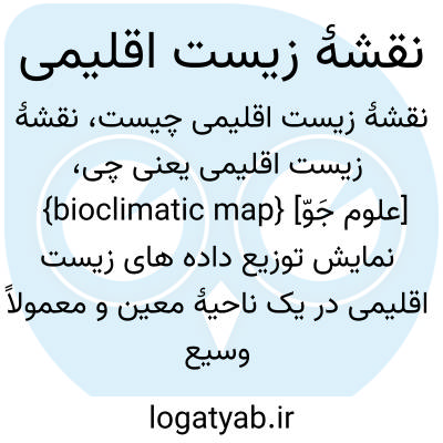 {bioclimatic map} [علوم جَوّ] نمایش توزیع داده های زیست اقلیمی در یک ناحیۀ معین و معمولاً وسیع کرۀ زمین