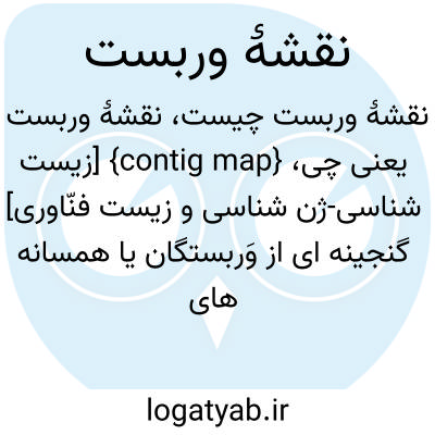 {contig map} [زیست شناسی-ژن شناسی و زیست فنّاوری] گنجینه ای از وَربستگان یا همسانه های همپوشان که بازنمود گسترۀ کامل دِنا است