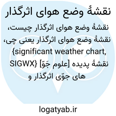 {significant weather chart, SIGWX} [علوم جَوّ] نقشۀ پدیده های جوّی اثرگذار و دیدبانی شدۀ ترازهای پروازی مختلف که بر کارکرد هواگَرد تأثیر می گذارد