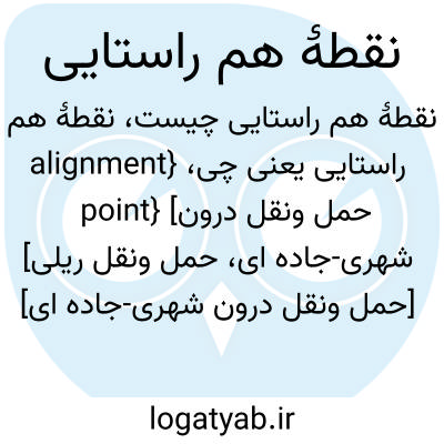 {alignment point} [حمل ونقل درون شهری-جاده ای، حمل ونقل ریلی] [حمل ونقل درون شهری-جاده ای] نقطۀ مرجع مکانی ای که از طریق آن خط محور علائم راهنمایی و رانندگی تنظیم می شود تا بیشترین امکان رؤیت پذیری حاصل شود [حمل ونقل ریلی] نقطۀ مرجع مکانی ای که از طریق آن خط محور باری...