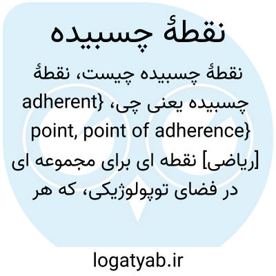 {adherent point, point of adherence} [ریاضی] نقطه ای برای مجموعه ای در فضای توپولوژیکی، که هر همسایگی آن شامل نقطه ای از آن مجموعه باشد