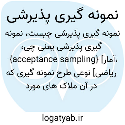 {acceptance sampling} [آمار، ریاضی] نوعی طرح نمونه گیری که در آن ملاک های مورد استفاده برای پذیرفتن یا رد کردن بسته هایی از کالا را برحسب مطابقت یا عدم مطابقت آنها با استانداردهای پذیرفته شده مشخص می کنند
