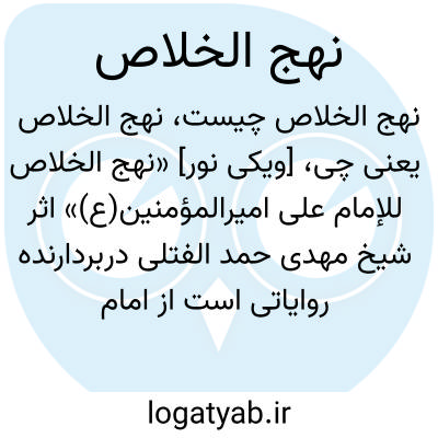 [ویکی نور] «نهج الخلاص للإمام علی امیرالمؤمنین(ع)» اثر شیخ مهدی حمد الفتلی دربردارنده روایاتی است از امام علی(ع) پیرامون فتنه ها و وقایعی که از عصر نبوت تا پایان جهان، اتفاق خواهد افتاد.