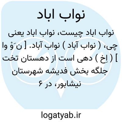 ( نواب آباد ) نواب آباد. [ ن َوْ وا ] ( اِخ ) دهی است از دهستان تخت جلگه بخش فدیشه شهرستان نیشابور، در 6 هزارگزی شمال فدیشه، در جلگه معتدل هوائی واقع است و 357 تن سکنه دارد. آبش از قنات، محصولش غلات، شغل مردمش زراعت و کرباس بافی است. ( از فرهنگ جغرافیایی ایران ج 9 ).