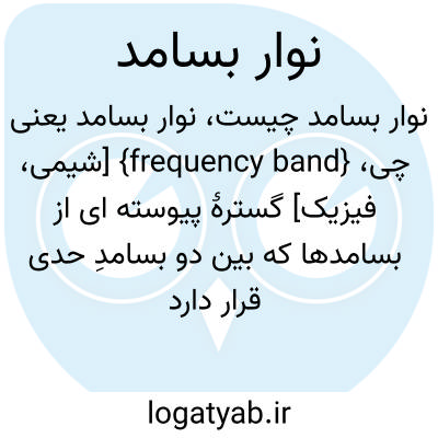 {frequency band} [شیمی، فیزیک] گسترۀ پیوسته ای از بسامدها که بین دو بسامدِ حدی قرار دارد