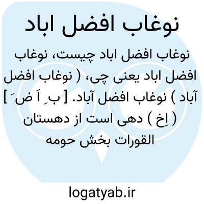 ( نوغاب افضل آباد ) نوغاب افضل آباد. [ ب ِ اَ ض َ ] ( اِخ ) دهی است از دهستان القورات بخش حومه شهرستان بیرجند، در 30 هزارگزی شمال غربی بیرجند در دامنه معتدل هوائی واقع است و 197 تن سکنه دارد. آبش از قنات، محصولش غلات و گردو و انار، شغل مردمش زراعت است. مزارع سرخ نخ، کینه مک، کلاته مقیم جزو این ده است. ( از فرهنگ جغرافیایی ایران ج 9 ).