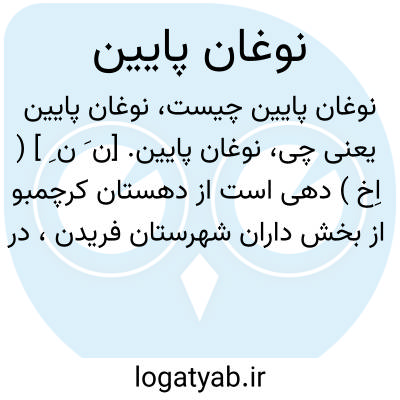 نوغان پایین. [ن َ ن ِ ] ( اِخ ) دهی است از دهستان کرچمبو از بخش داران شهرستان فریدن، در جلگه سردسیری واقع شده و 312 تن سکنه دارد. آبش از رودخانه، محصولش غلات و حبوبات و سیب زمینی، شغل مردمش زراعت و گله داری و جاجیم بافی و قالی بافی است. ( از فرهنگ جغرافیایی ایران ج 10 ).