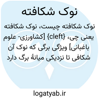 {cleft} [کشاورزی- علوم باغبانی] ویژگی برگی که نوک آن شکافی تا نزدیکی میانۀ برگ دارد