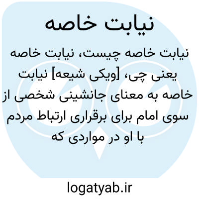[ویکی شیعه] نیابت خاصه به معنای جانشینی شخصی از سوی امام برای برقراری ارتباط مردم با او در مواردی که ارتباط مستقیم مردم با وی ممکن نیست. در این شرایط امام، افراد خاصی را به عنوان نایب خود قرار می دهد. امام باید شخصا نائبش را به مردم معرفی نموده یا نایب قبل از او، نائب جدید را به مردم بشناساند. برخی مورخین نیابت را به معنای جانشینی مطلق گرفته‎اند و معتقدند تنها وکلای امام زمان (عج) در دوره غیبت صغری یا همان نواب اربعه به عنوان نائب خاص و جانشین مطلق محسوب می‎شدند. بر اساس این نظریه حتی برترین وکلای دوره حضور ائمه نیز قائم مقام مطلق و نائب خاص امام به شمار نمی‎آمدند زیرا ارتباط امام با مردم قطع نشده بود از این رو به آنها سفیر یا وکیل امام اطلاق می‎شد.