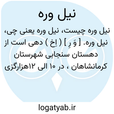 نیل وره. [ وَ رِ ] ( اِخ ) دهی است از دهستان سنجابی شهرستان کرمانشاهان، در 10 الی 12هزارگزی شمال غربی کوزران و 5هزارگزی راه فرعی کوزران به ثلاث، در منطقه کوهستانی سردسیری واقع است و 300 تن سکنه دارد. آبش از چشمه و محصولش غلات، حبوبات دیم، لبنیات و شغل اهالی زراعت است. ( از فرهنگ جغرافیائی ایران ج 5 ).