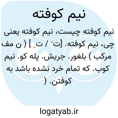 نیم کوفته. [ت َ / ت ِ ] ( ن مف مرکب ) بلغور. جریش. پله کو. نیم کوب. که تمام خرد نشده باشد به کوفتن. ( یادداشت مؤلف ).