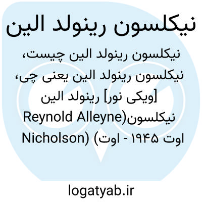 [ویکی نور] رینولد الین نیکلسون(Reynold Alleyne Nicholson) (اوت ۱۹۴۵ - اوت ۱۸۶۸) خاورشناس و اسلام شناس انگلیسی، شارح و مترجم آثار عرفانی فارسی و اسلامی به زبان انگلیسی،  مصحّح و مفسر بزرگ مثنوی معنوی