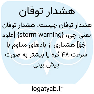 {storm warning} [علوم جَوّ] هشداری از بادهای مداوم با سرعت 48 گره یا بیشتر به صورت پیش بینی شده یا درحال وزیدن که با چرخند حارّه ای همراه نیست
