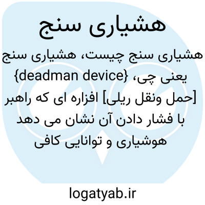 {deadman device} [حمل ونقل ریلی] افزاره ای که راهبر با فشار دادن آن نشان می دهد هوشیاری و توانایی کافی برای هدایت قطار را دارد