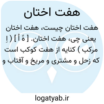 هفت اختان. [ هََ اُ ] ( اِ مرکب ) کنایه از هفت کوکب است که زحل و مشتری و مریخ و آفتاب و زهره و عطارد و قمر باشد. ( برهان ).