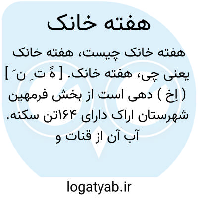 هفته خانک. [ هََ ت ِ ن َ ] ( اِخ ) دهی است از بخش فرمهین شهرستان اراک دارای 164تن سکنه. آب آن از قنات و چشمه و محصول عمده اش غله،بنشن و میوه است. ( از فرهنگ جغرافیائی ایران ج 2 ).