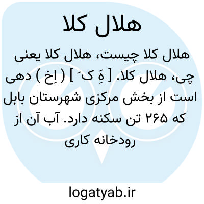 هلال کلا. [ هَِ ک َ ] ( اِخ ) دهی است از بخش مرکزی شهرستان بابل که 265 تن سکنه دارد. آب آن از رودخانه کاری و محصول عمده اش برنج، صیفی، کنف، پنبه،غله و نیشکر است. ( از فرهنگ جغرافیائی ایران ج 3 ).