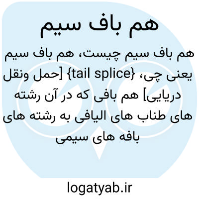 {tail splice} [حمل ونقل دریایی] هم بافی که در آن رشته های طناب های الیافی به رشته های بافه های سیمی متصل می شود