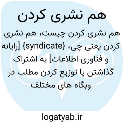 {syndicate} [رایانه و فنّاوری اطلاعات] به اشتراک گذاشتن یا توزیع کردن مطلب در وبگاه های مختلف