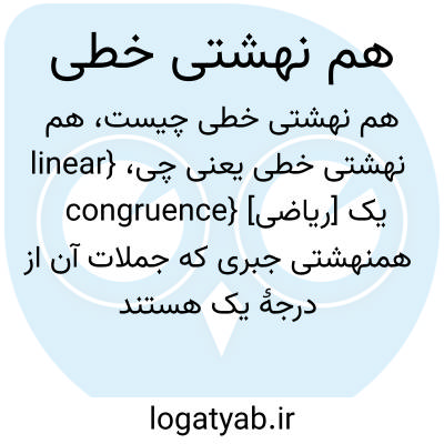 {linear congruence} [ریاضی] یک همنهشتی جبری که جملات آن از درجۀ یک هستند