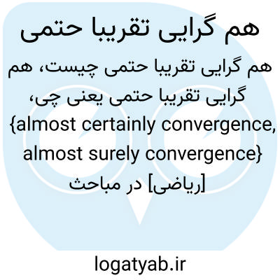 {almost certainly convergence, almost surely convergence} [ریاضی] در مباحث تصادفی در آمار، هم گرایی به جز در مجموعه ای با احتمال صفر