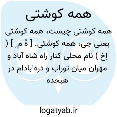 همه کوشتی. [ هََ م ِ ] ( اِخ ) نام محلی کنار راه شاه آباد و مهران میان توراب و دره ٔبادام در هیجده هزارگزی شاه آباد. ( یادداشت مؤلف ).