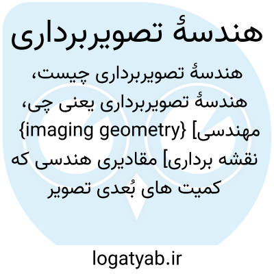 {imaging geometry} [مهندسی نقشه برداری] مقادیری هندسی که کمیت های بُعدی تصویر مانند اندازه و مرکز را تعیین می کنند